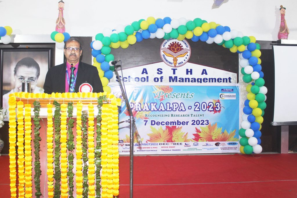 Previous Image Next Image Prakalpa 6 Prof. (Dr.) Ashok Kumar Panda, Director (SC &C) delivering the welcome note on the eve of PRAKALPA-2023 on 7th Dec 2023.
