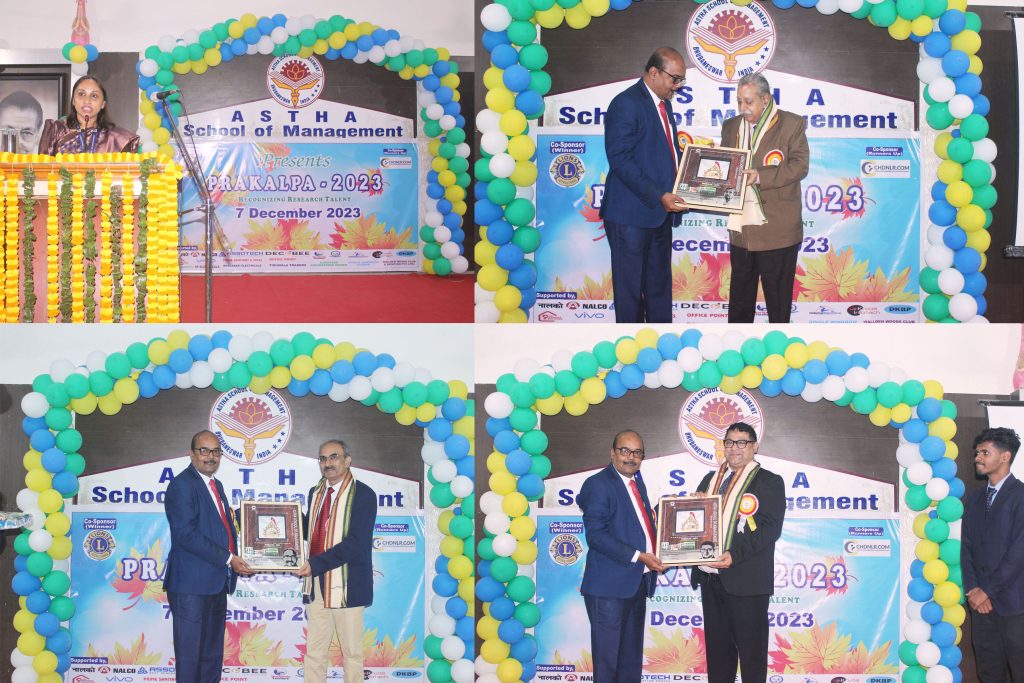 The Jury Member of PRAKALPA-2023 Captain K.S.V. Subramanian, Veteran, Prof. Sanjay Adhalkha, AFCA, & Chief Guest Prof. (Dr.) RKS Mangesh Dash, President of Centre for Human Development & Neuro Linguistic Research, Mumbai are felicitated by Hon’ble ED-cum-Secretary, & Vote of thanks was given by Dr. Sthitipragyan Biswal.